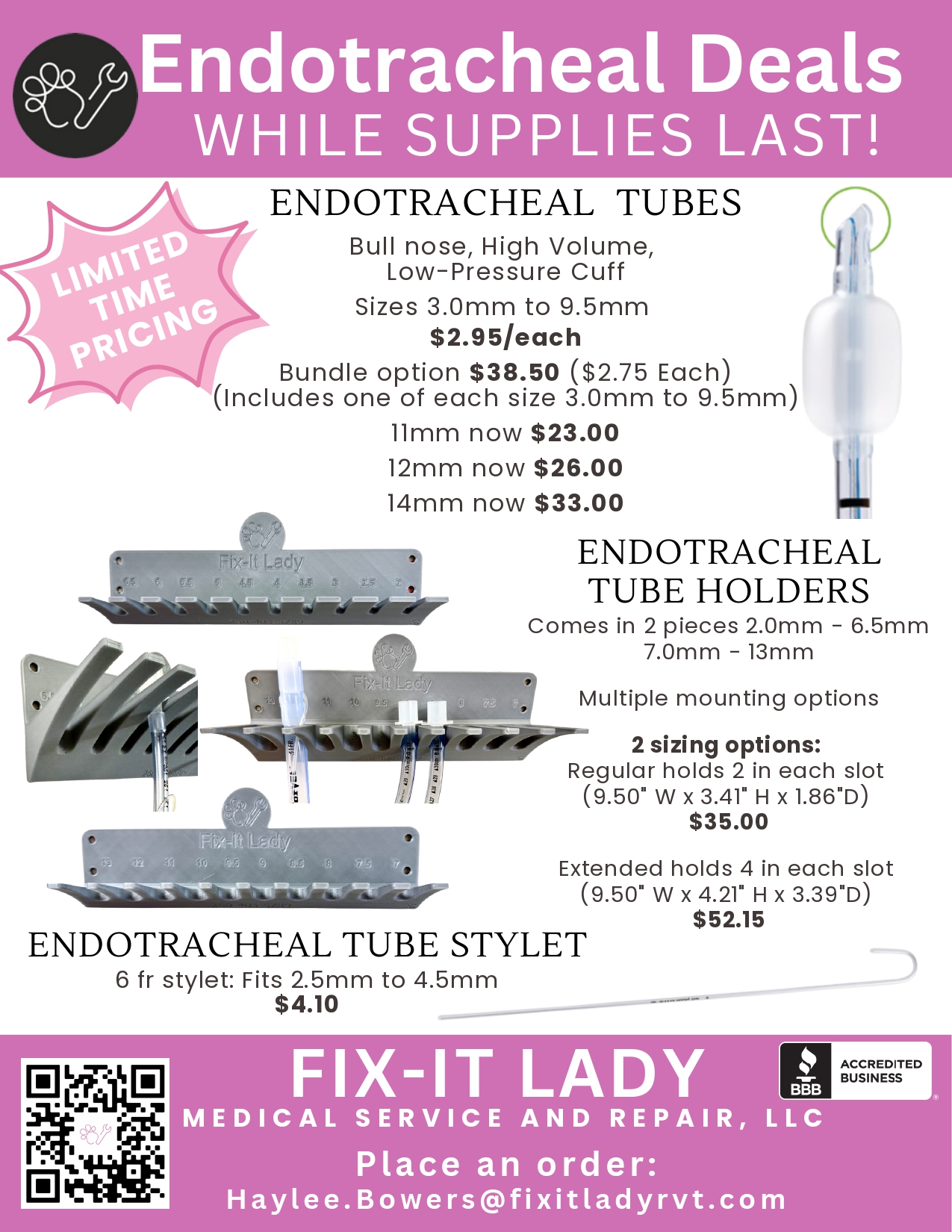 Note: During the development of this website, we hit a few roadblocks that prevent us from featuring all those items we can provide our veterinary facilities. To prevent damaging the relationship between Fix-it Lady and these manufacturers we respect their requests by not displaying their items on this page. If you would like a spreadsheet